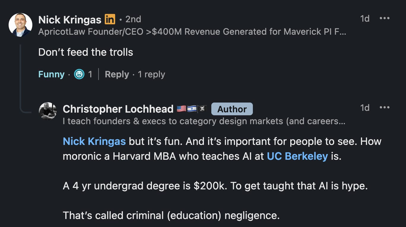 I’ve been having a delicious fight with a guy on LinkedIn.
