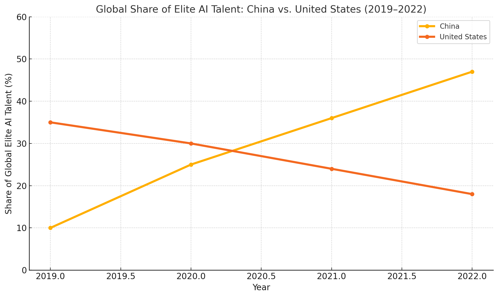 In 2019, the U.S. held 35% of the global elite AI talent pool (top 2% researchers).